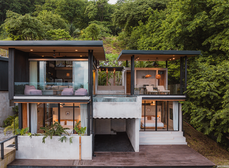 Villa Guanacaste is a brand new, top of the line tropical villa in the heart of Santa Teresa, Costa Rica. It is an outstanding piece of architecture that has been designed to bring the outside inside for our guests to savour their incredible Costa Rican surroundings. 2 beds, 2 baths + Gym. The villa is built as open space and can host up to 6 people in great comfort and style. Situated in the heart of Santa Teresa Playa inside a private, secluded hillside. Surrounded by amazing views of the jungle. The outdoor spaces are set in a maintained tropical garden, surrounding an aesthetically designed private swimming pool with plenty of shaded areas, as well as loungers for sunbathing. Offer each guest a unique experience of both natural environment and complete vacation amenities. It’s a perfect luxury getaway for several couples, families with children.