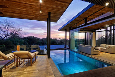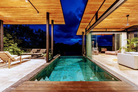 Villa Guanacaste is a brand new, top of the line tropical villa in the heart of Santa Teresa, Costa Rica. It is an outstanding piece of architecture that has been designed to bring the outside inside for our guests to savour their incredible Costa Rican surroundings. 2 beds, 2 baths + Gym. The villa is built as open space and can host up to 6 people in great comfort and style. Situated in the heart of Santa Teresa Playa inside a private, secluded hillside. Surrounded by amazing views of the jungle. The outdoor spaces are set in a maintained tropical garden, surrounding an aesthetically designed private swimming pool with plenty of shaded areas, as well as loungers for sunbathing. Offer each guest a unique experience of both natural environment and complete vacation amenities. It’s a perfect luxury getaway for several couples, families with children.